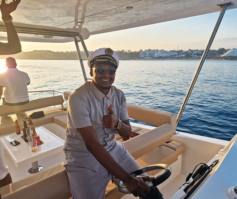NAVIGATE TO THE WEST, heading to the breathtaking Alvor lagoon. From Vilamoura to Portimão, the journey is full of beautiful renowned caves. Enjoy a glass of champagne. Lunch by the water on a heavenly restaurant, before the guided tour through the lagoon’s natural surroundings. Pure pleasure.